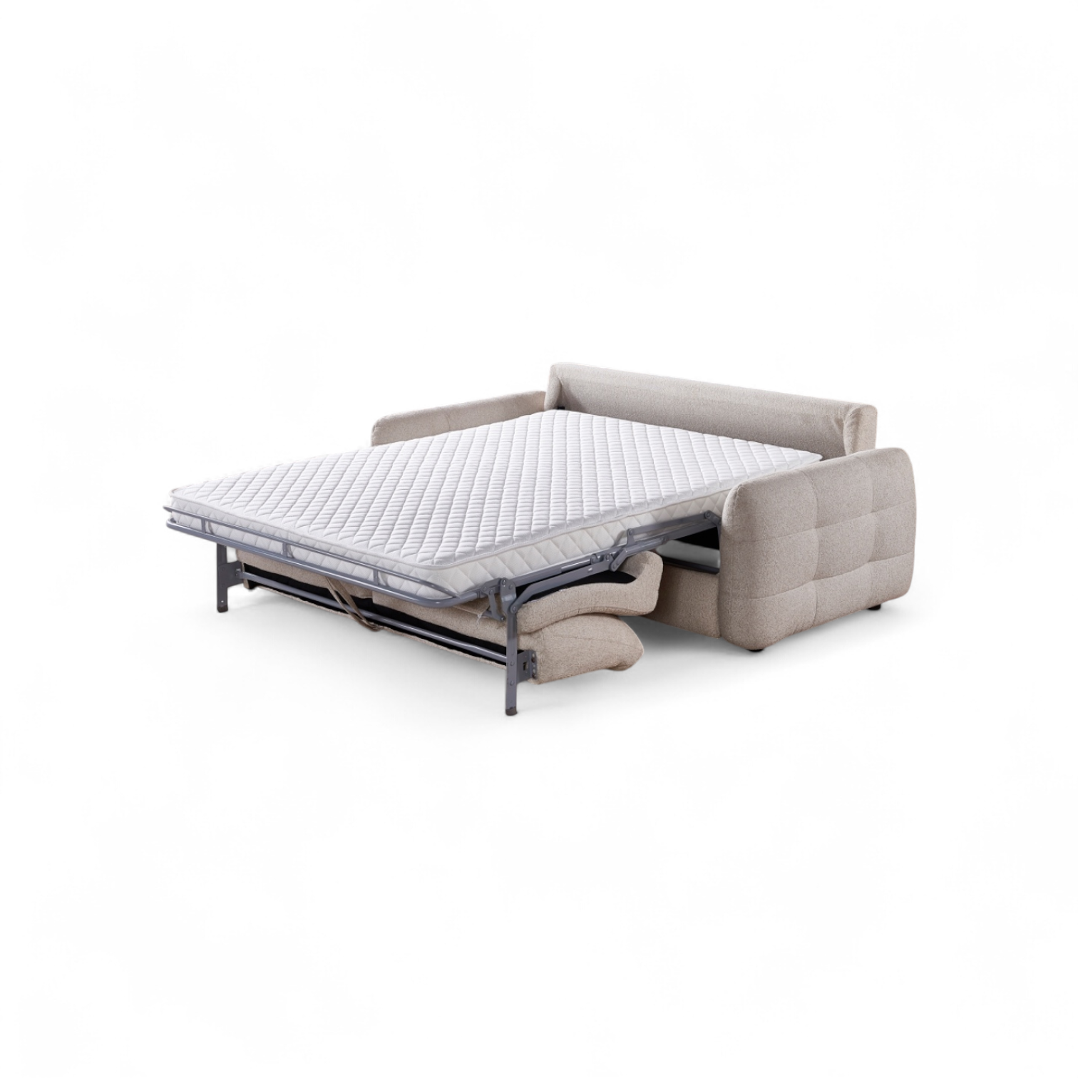 Athens 3 seater fabric sofa bed with pull out sleeper function. Modern design with tufted arms and soft textured upholstery. Converts easily from sofa to bed with a supportive mattress. Ideal for living rooms, flats, apartments and guest rooms. Space saving sofa bed suitable for UK homes.