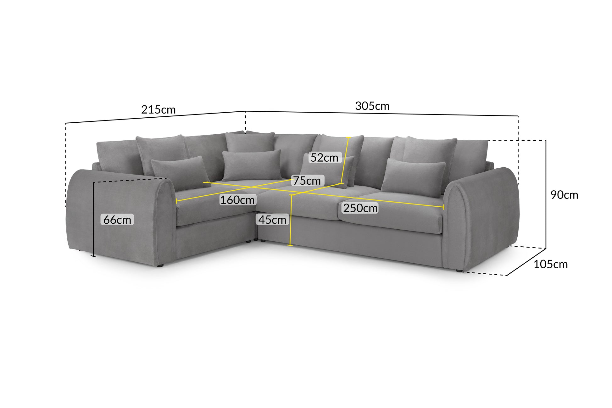 The Mirabel LHF Corner Sofa is a stylish and spacious seating solution, perfect for modern living spaces. Upholstered in soft fabric, it offers deep cushions, clean lines, and a contemporary silhouette—ideal for lounging in comfort and style.